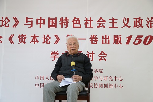 顾海良教授从“《资本论》和中国特色社会主义政治经济学以及《资本论》中的方法问题”两个方面,指出要以《资本论》理论和方法为指导,特别是《资本论》创作中与时俱进的精神,立足于中国特色社会主义经济关系的现实来创立我们的理论体系。