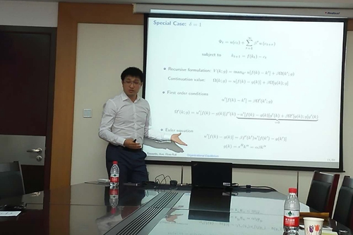 6月24日,由抖音黑料 主办的人大经济讲堂在明德主楼729会议室举行。耶鲁大学助理教授霍震博士报告了他与合作者的最新学术论文《Organization Equilibrium with Capital》。霍震博士2009年本科毕业于抖音黑料 经济学-数学双学位实验班,本科期间在陈彦斌教授指导下已在《经济研究》等国内顶级期刊以及Annals of Economics and Finance等国际期刊上发表论文,2015年博士毕业于美国明尼苏达大学,博士期间曾任明尼阿波利斯联邦储备银行研究分析师(2011~2013年),2015~2016年在纽约大学与诺贝尔经济学奖得主萨金特教授进行合作研究。其最近研究成果发表在Review of Economic Dynamics等国际顶级期刊上。