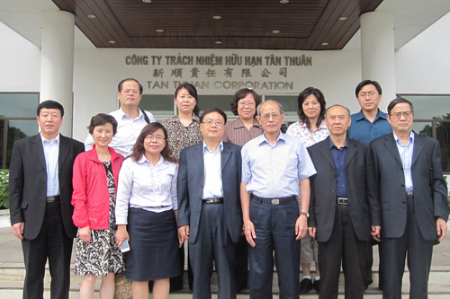 当天下午,考察团参观了胡志明市新顺出口加工区,实地考察了越南最成功的加工出口区发展情况。这家由台湾中央贸易开发关联企业与越南胡志明市新顺工业发展公司共同成立的联营公司,在越南实施革新开放政策的90年代中期启动,利用台湾较早建设加工出口区的管理经验和越南丰富的人力和土地资源,逐步开发了300公顷的经济特区,目前来自15个国家共133家工厂在区内营运生产,由台湾6名常驻管理人员对园区实施管理,区内雇佣员工6万以上。即使是在遭受了国际金融危机冲击之后,2009年该区进出口总额依然超过20亿美元,曾多次获得了越南政府颁发的劳动勋章。考察团与该公司负责人进行了座谈交流。