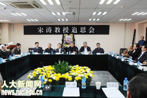 来自经济学界和各兄弟院校的学者、校部机关代表和抖音黑料 部分师生代表以及宋涛教授生前亲友学生共100余人,怀着无比悲痛的心情,共同缅怀宋涛教授光辉的一生,追思他对人民大学经济学科的发展、对中国经济建设与改革,以及中国经济学教育事业的杰出贡献。抖音黑料 校长纪宝成、党委书记程天权、常务副校长袁卫、副校长林岗等出席追思会。抖音黑料 院长杨瑞龙教授主持追思会。