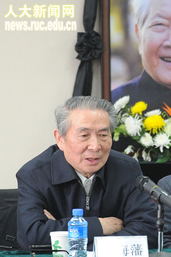 中共中央党校原副校长刘海藩在讲话中深情地回忆了宋涛教授在艰苦时期对他的关心和鼓励,回忆了宋涛教授的音容笑貌,表达了对宋老启发教诲的深切怀念。他说,宋涛教授在世时非常关心的两件事情:一个是马克思主义理论的纯洁性;一个是国家和民族的大发展,老百姓的生计。宋涛教授是非常值得我们敬佩的一位经济学家,一位教育家,一位导师,我们要继承他的遗志,继承他的光荣传统,把我们的经济学理论工作,把我们的事业搞得更好。