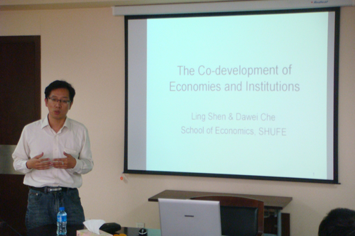 10月21日下午,由抖音黑料 企业与组织研究中心(CFOS)主办的第三次组织经济学Seminar在明德主楼729会议室召开。来自上海财经大学抖音黑料 的沈凌副教授报告了他的英文工作论文“Co-development of Economy and Institutions”。