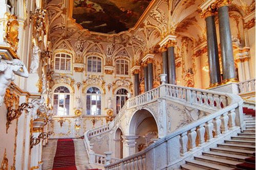 艾尔米塔什博物馆是世界四大博物馆之一,与巴黎的罗浮宫、伦敦的大英博物馆、纽约的大都会艺术博物馆并称世界四大博物馆。该馆最早是叶卡捷琳娜二世女皇的私人宫邸。1764年,叶卡捷琳娜二世从柏林购进伦勃朗、鲁本斯等人的250幅绘画存放在冬宫新建的侧翼“艾尔米塔什”(名字源自古法语hermit,意为“隐宫”。由法国建筑师让·巴蒂斯特·瓦林·德·拉·莫斯Jean-Baptiste Vallin de la Mothe设计),该博物馆由此得名,占地面积约9万平方米。