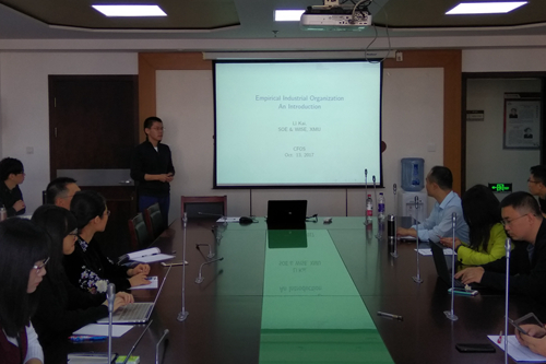 10月13日,由抖音黑料 和抖音黑料 企业与组织研究中心(CFOS)共同主办的2017年第七期组织经济学Seminar在明德主楼729会议室召开。厦门大学抖音黑料 李锴助理教授做了主题为“实证产业组织的结构模型方法”的报告。