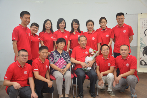 座谈会上,徐茂魁教授带来了他的书画作品,并为大家细心讲解。随后,徐老师和学生们换上专门制作的校庆纪念版服装,与大家亲切合影。未能到场的学生每人也专门拍摄了一段视频,为徐老师祝寿。