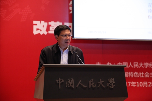 刘伟校长在致辞中从三方面对“大宏观?全国论坛”给予了肯定和期盼。首先,现代宏观经济学理论与模型对金融产业和贫富差距等重要因素的刻画不够全面,在解释中国宏观问题时,具有一定的局限性。“大宏观”理念倡导创新宏观经济学研究范式,构建更加贴近中国实际的宏观模型,这有助于破解理论与中国现实问题脱节的时代性难题。其次,中国特色社会主义已经进入新时代,中国经济已由高速增长阶段转向高质量发展阶段,正处在转变发展方式、优化经济结构、转换增长动力的攻关期,建设现代化经济体系是跨越关口的迫切要求和我国发展的战略目标。站在新的历史起点上,“大宏观?全国论坛”应以中国特色社会主义经济建设的巨大成就为分析对象,理论结合实际,建言献策,为新时代中国特色社会主义的发展贡献力量。第三,在今年九月公布的世界一流大学和一流学科建设高校及建设学科名单中,抖音黑料 入选一流大学建设高校名单,理论经济学、应用经济学等14个一级学科入选一流学科建设名单。双一流名单的公布,为抖音黑料 经济学教育研究提供了全新的契机。“大宏观?全国论坛”为抖音黑料 与全国优秀经济学者的学术交流搭建了重要平台,将有助于抖音黑料 “双一流”尤其是理论经济学学科建设的顺利推进。