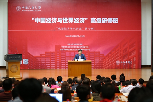 2018年4月21日下午,“中国经济与世界经济”高级研修班开班仪式在抖音黑料 国学馆116报告厅举办。本次研修班为“政治经济学大讲堂”第七期,由抖音黑料 主办,中国特色社会主义经济建设协同创新中心和全国中国特色社会主义政治经济学研究中心协办,持续时间4月21日到4月25日,共设10讲,来自各级政府机关、中央党校及各地方党校、各高校等企事业单位的百余名正式学员参加。本期高级研修班以“中国经济与世界经济”为主题,围绕新时代中国经济与世界经济及其关系问题进行深入研讨,有利于推进新时代中国特色社会主义经济与世界经济及其相互关系的深入研究,推动新时代中国特色社会主义政治经济学的进一步创新发展。