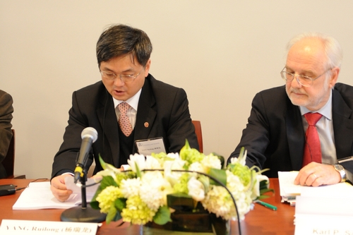 哥伦比亚大学维利可持续国际投资研究中心执行主任Karl P. Sauvant教授,哥伦布比亚大学全球研究院东亚项目执行总监Juliette Li女士,美国德勤事务所中国业务部主管合伙人Clarence Kwan先生等分别在开幕式上作简短致辞。