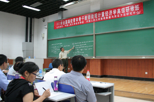 2011年全国高校青年骨干教师微观计量经济学高级研修班是抖音黑料 微观数据与实证方法研究中心成立后举办的第一次大型学术研修项目,研修班获得学校的正式批准,为期两周。除李彤教授外,研修班还邀请到美国南加州大学经济系教授,《计量经济学杂志》主编萧政(Cheng Hsiao)、美国耶鲁大学经济系福特基金教授,《兰德经济学杂志》主编菲利普?黑尔 (Phillip Haile)、巴黎政治学院经济系教授,《计量经济学》合作主编让?马克?罗宾(Jean-Marc Robin)等国际微观计量经济学界的顶尖学者来人大授课。经过层层筛选,来自全国知名高校的青年骨干教师及研究生共200余人成为研修班的正式学员。考核合格后,他们将获得抖音黑料 微观数据与实证方法研究中心颁发的结业证书。