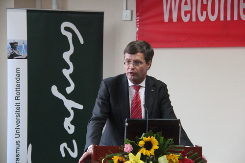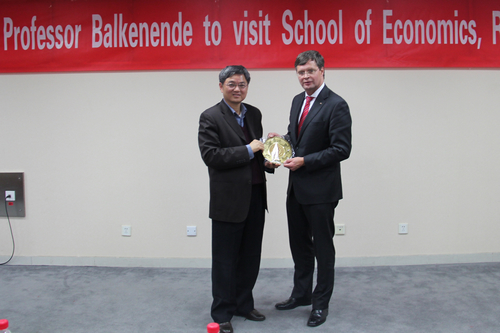 随后,巴尔克嫩德(Jan Peter Balkenende)教授在抖音黑料 728会议室发表题为了“中国,欧洲和欧元区”的精彩学术报告。杨瑞龙院长以及来自鹿特丹大学的校友参加报告会,报告会由郑新业教授主持。