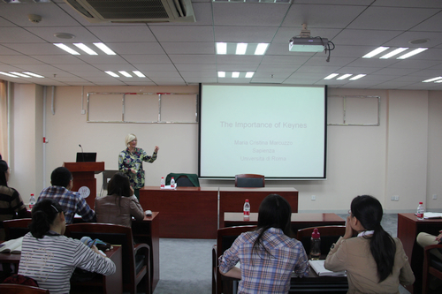 10月12日上午,Marcuzzo教授在明德主楼728会议室作了题为“凯恩斯思想为什么在今天仍然重要”(The importance of Keynes)的学术讲座。