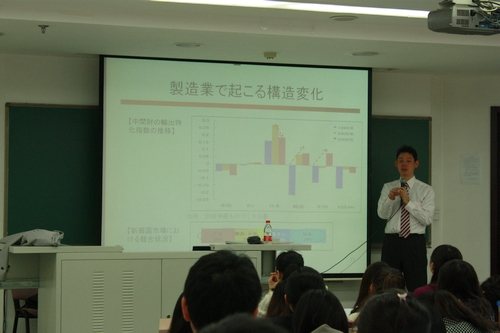 崛井伸浩副教授在演讲中着重分析了上世纪九十年代后日本国际竞争力、产业结构、贸易结构等方面发生的深刻变化,并提出日本企业的未来发展战略,强调与中国企业进行战略合作的必要性和重要性。