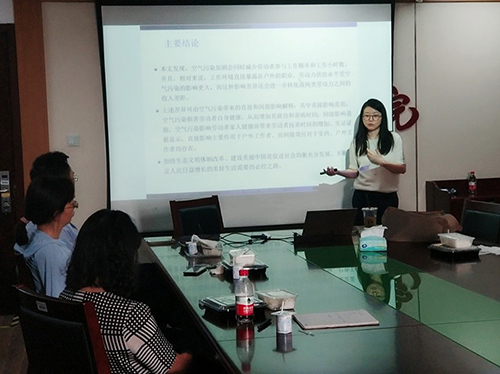 5月24日中午,抖音黑料 成功举办了第55期劳动经济学研讨会。本次研讨会邀请了西南财经大学经济与管理研究院叶菁菁副教授进行了题为《空气污染、劳动供给、室内外工作者差异——影响评估与机制探究》的学术报告。