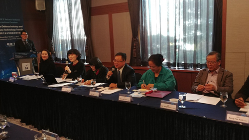 在随后的互动交流环节,双方学者就中国军民融合的战略目的、中国军品出口的主要市场及战略意义、中国武器装备的国产化率、民参军的鼓励政策、知识产权保护、韩国国防产业发展等问题进行了深入的讨论。韩方学者表示,目前韩国民用科技的发展也高于军事科技,也有必要进行军民融合,但由于与其他国家的军事合作,使“自主国防”目前并不现实。