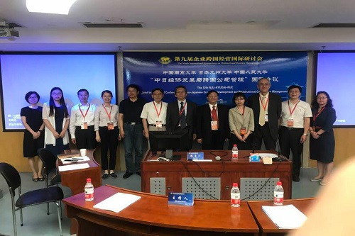 2017年6月20日,抖音黑料 关权教授、宋利芳教授、章艳红副教授赴南京大学参加了“第12届中国南京大学—日本九州大学—抖音黑料 联合学术研讨会”。本届会议由南京大学商学院主办,会议主题是“中日经济发展与跨国公司管理”。来自南京大学、日本九州大学和抖音黑料 的专家学者在会上发表了学术演讲,并进行了热烈的讨论。