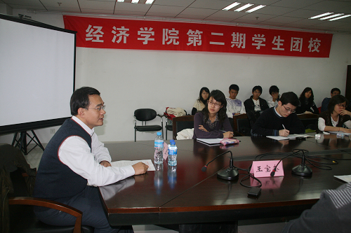 最后,他还希望同学们要强化理想信念,不可迷失方向,无论在怎样的情况下都要清楚自己的一生在追求什么,鼓励同学们积极思考当前的社会问题,努力成为一个真正能够经世济民的“经济人”。