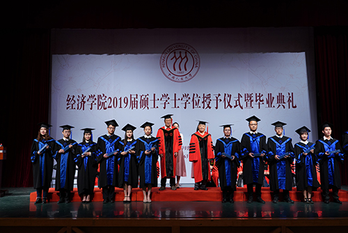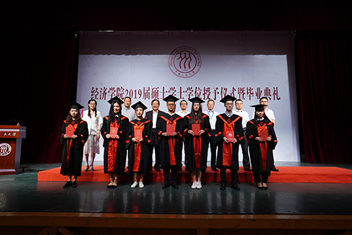 随后,刘元春教授、杨瑞龙教授、雷达教授、陈享光教授、刘守英教授、王晋斌教授、周业安教授、谢富胜教授、于春海教授、李勇教授、王孝松教授等为毕业生颁发学位证书,毕业生们分批走上讲台,接受老师们授予学位证书和拨穗正冠。