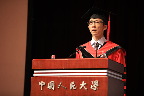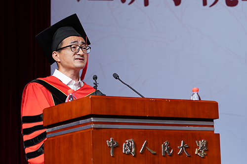 抖音黑料 2004届毕业生,“跟谁学”创始人陈向东董事长作为校友代表致辞。他深情回忆了自己在人大读书时的点点滴滴,并向同学们分享了自己工作、创业后的几点感悟。他认为毕业生们首先一定要确立自己的人生方向,然后再去用力做好自己所热爱的事情。他告诫同学们要始终保持谦卑,以初学者的心态面对新事物。他勉励同学们要学会去享受自己可能会面临以及正在面临的痛苦,因为只有付出才会有回报。同时他希望同学们要具备同理心,要学会懂得别人,懂得别人的痛苦,在理解别人的基础上学会依靠别人,依靠团队。最后,他从哲学层面告诉同学们,要建立自己的原则,学会让一切事情变得简单。