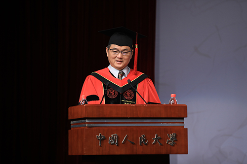 刘守英书记祝贺大家圆满毕业,他称:人生就是将一堵堵墙翻越过去。希望同学们首先要用好经济学的思维方式,以分析约束条件为出发点,就能客观地认识体制、规则、财富等对人的行为的影响,从而减少意气用事、怨天尤人,避免偏激、走极端。以问题为导向,就不会高谈阔论,不会把种种不如意推给他人或社会。其次,要发挥90后独立、创新、勇敢的比较优势,同时要克服把一切看得太容易、强烈的反叛意识等比较劣势。第三,要认识世界的复杂性,90后所面对的是一个完全不同于以往的外部世界,他期望同学们能够在复杂性中锤炼自己,同时解决所面对的复杂性。最后,他生动地将人生中不同际遇、不同困境下的一次次奋斗和转折比作“翻墙”,与大家分享了他自己已经翻越的三堵墙和正在翻越的、到大学从事教育这堵墙,勉励同学们在遇到人生之墙时要勇敢地翻过去。