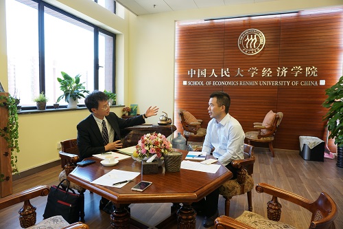 5月6日上午,日本山口国立大学经济学部国际交流负责人陈礼俊教授访问抖音黑料 。抖音黑料 副院长郑新业教授会见了陈礼俊教授。