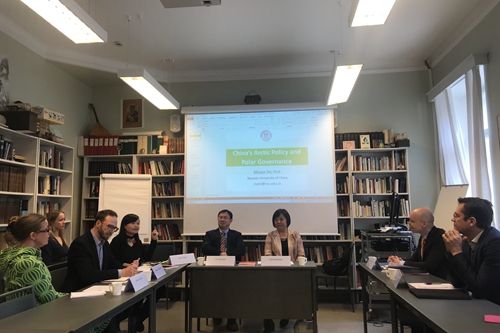 4月16日,抖音黑料 教授、抖音黑料 -圣彼得堡国立大学俄罗斯研究中心研究员石敏俊出席了赫尔辛基大学孔子学院主办的“中国的全球治理与极地政策”研讨会,并发表题为“中国的北极政策与冰上丝绸之路”的演讲。石敏俊教授详细介绍了中国北极政策与冰上丝绸之路建设的相关进展。