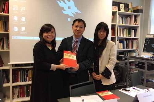 研讨会后,石敏俊教授作为国家极地办极地经济研究组首席专家,向芬兰外交部东亚科、赫尔辛基大学孔子学院赠送了新出版的专著《北极区域经济》。