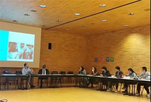 当天下午,项目组师生在国际组织工作人员的带领下分别参观了世界卫生组织(WHO)与联合国艾滋病规划署(UNAIDS)。在参观中,同学们详细了解了卫生类国际组织的工作流程和组织结构,并在联合国艾滋病规划署会议室中与工作人员开展交流。在交流过程中,联合国艾滋病规划署高级顾问Béchir 先生与N'Daw先生为项目成员答疑解惑,向师生详细介绍了联合国艾滋病规划署的工作基本情况与目前全球艾滋病的防治工作状况。随后,联合国艾滋病规划署高级战略顾问魏然老师为同学们详细介绍了中国在艾滋病的防治工作中做出的重要贡献,并鼓励同学们培养国际视野和能力,丰富与国际组织相关的经历和体验,提高自身素质。