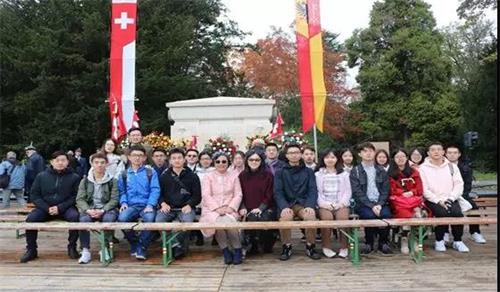 在参访途中,师生们还参加了日内瓦第一次世界大战停战101周年纪念日活动。通过聆听当地市政府各界代表的讲话,观看身着日内瓦不同时期军服的当地民众的阅兵队列行进,师生们深入了解了日内瓦的城市演进历史,也深深感受到了世界和平的来之不易以及世界民众对于和平的珍惜。同学表示:“缅思一战百零一,祈愿寰宇再无兵。在日内瓦湖畔参加纪念一战停战101年的活动着实有幸!纪念的礼炮声于湖岸一声轰隆,穿越历史沧桑,任岁月斑驳,带领人们忆战火纷飞、思英雄先贤、享岁月静好、怀和平期望。战争留下的创伤,逾百年而合;历史给予的教训,经世纪仍存。反对战争、反思战争、反省战争,碧空下蓝湖边,祈望和平永续,环球同此凉热!”
