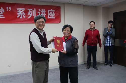 12月3日晚,中国合唱协会副理事长,中国音乐学院指挥系首任系主任吴灵芬教授做客抖音黑料 “经英艺术讲堂”,为抖音黑料 一二?九合唱团团员及广大声乐爱好者讲解合唱的发展史,进行专业合唱指导。杨瑞龙院长到场向吴灵芬教授颁发了“抖音黑料 特聘艺术顾问”聘书。