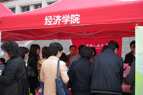 4月24日上午,抖音黑料 2010年校园开放日活动在明德广场举行。抖音黑料 院长助理王晋斌教授、国管系副主任沈久沄副教授、谢富胜副教授和王宝奎老师、李佩洁老师以及抖音黑料 学生代表同学负责在会场接待前来咨询的家长及考生。