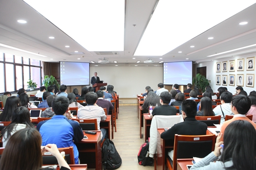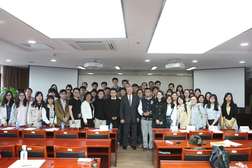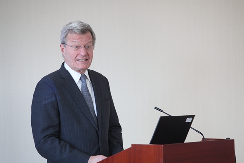 4月18日,美国驻华大使马克斯?博卡斯到访抖音黑料 并在抖音黑料 举行了以“中国主办G20年的中美经贸关系”为主题的讲座。