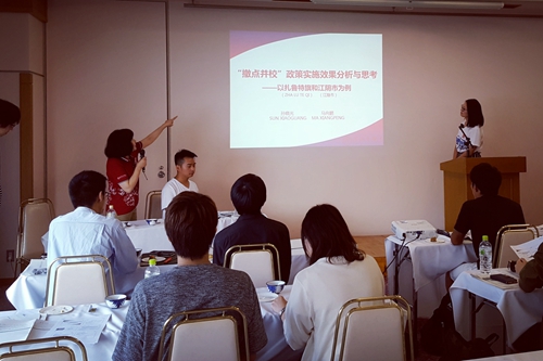 周堃和姬晨阳两位同学带来关于“中国四川省农村劳动力回流及案例分析”的展示,提出改善劳动力回流创业就业环境的相关思考。孙晓光和马向鹏两位同学带来“‘撤点并校’政策实施效果分析与思考——以扎鲁特旗和江阴市为例”的展示,认为在地区经济水平提升的基础上,可利用“撤点并校”这一政策手段促进教育提升,并从资金倾斜、资源再利用、文化建设等三个方面提出未来发展方向。
