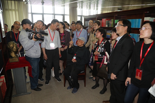 28日上午10时,吴易风教授与师门学生在抖音黑料 图书馆齐聚一堂,参观“业精于勤,行成于思”吴易风教授学术成就展。副校长刘元春教授出席参观活动并致辞,图书馆党委书记刘春鸿主持参观活动。