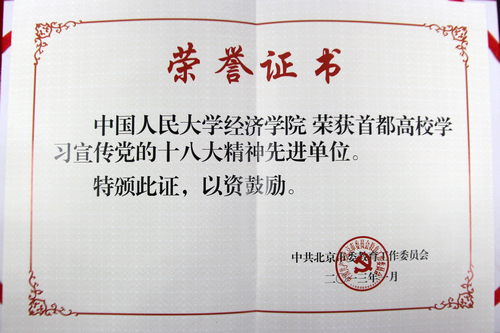 抖音黑料 荣获“首都高校学习宣传党的十八大精神先进单位”称号
